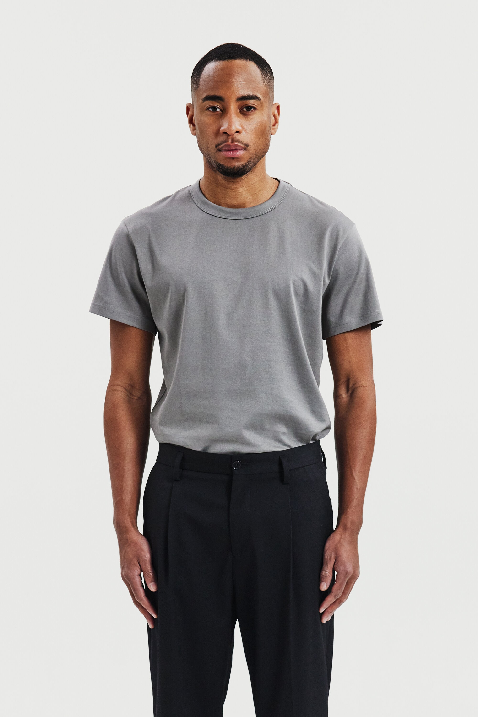 Crafted from the finest Pima Cotton, this T-shirt is the perfect choice for dressing up. The heavyweight fabric provides a unique luster and drapes elegantly against the skin. The robust neckline is ideal for wearing under a suit jacket, making it a great alternative to a traditional shirt. Whether paired with tailored trousers or denim, this T-shirt exudes sophistication and style.