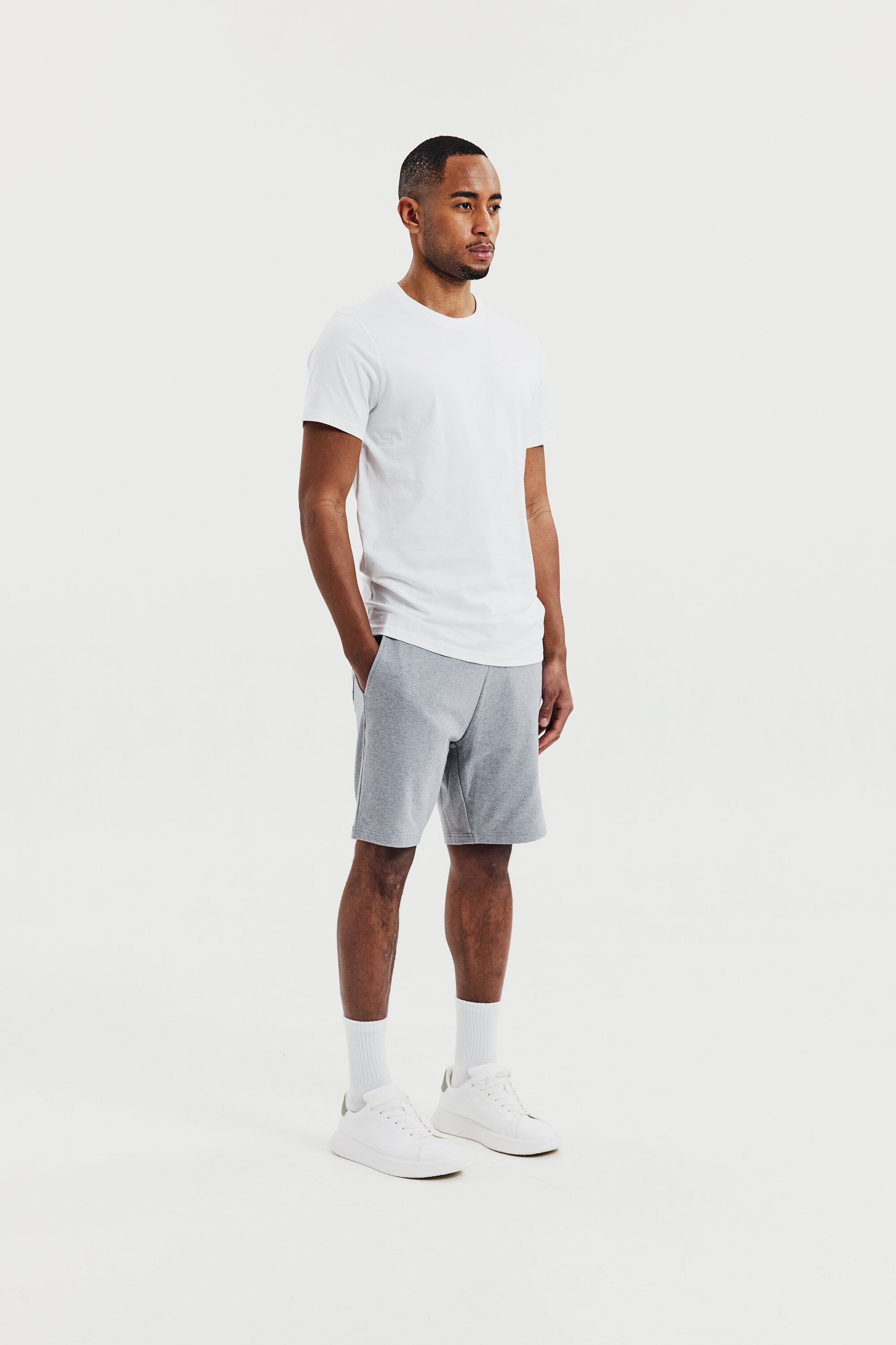 Extreem veelzijdige Lounge Shorts van zacht biologisch katoen. Minimalistisch, smal model dat tot net boven de knie komt. Ribgebreide boord in de taille met trekkoord en verzonken oogjes, zachte rand zonder naad onderaan de pijpen. Lichtelijk schuine zakken aan de voorkant en één zak aan de achterkant. Geschikt als relaxte korte joggingbroek maar ook als stijlvolle zomershort.
