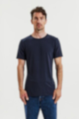 Vervaardigd uit luxueuze Lenzing TENCEL™ Lyocell, heeft dit T-shirt een opmerkelijke glans en een zijdezacht gevoel. Het biedt een iets slankere silhouet met precies de juiste hoeveelheid stretch voor een aansluitend gevoel, ideaal voor onder een overhemd te dragen of alleen voor een strakke, lichtgewicht pasvorm. De halslijn heeft een verborgen naad die het comfort verhoogt, terwijl de wasinstructies direct op de stof zijn gedrukt om schuren van labels te elimineren.