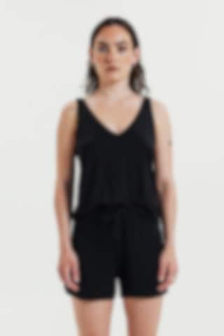 Voorzien van een flatterende V-hals voor en achter en decoratieve flatlock-stiksels bij hals en zoom. Combineer met bijpassende pyjamashorts of broek.