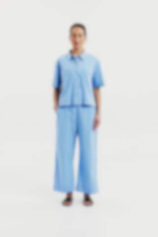 Poplin broek van biologisch katoen met een relaxte pasvorm. De broek heeft een enkellange lengte en wijde pijpen voor een moderne en comfortabele look. De elastische tailleband zorgt voor draagcomfort gedurende de hele dag, terwijl de steekzakken extra functionaliteit bieden.