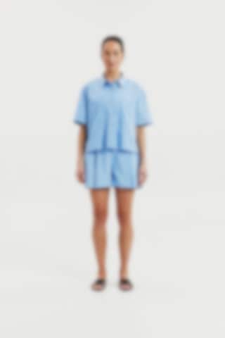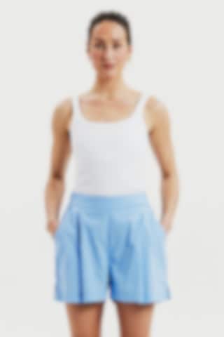 De elastische tailleband aan de achterkant zorgt voor extra comfort en flexibiliteit. Gemaakt van 100% biologisch katoenpoplin – een licht en ademend materiaal met een glad oppervlak. De kleur Air Blue geeft de shorts een frisse en zomerse uitstraling.