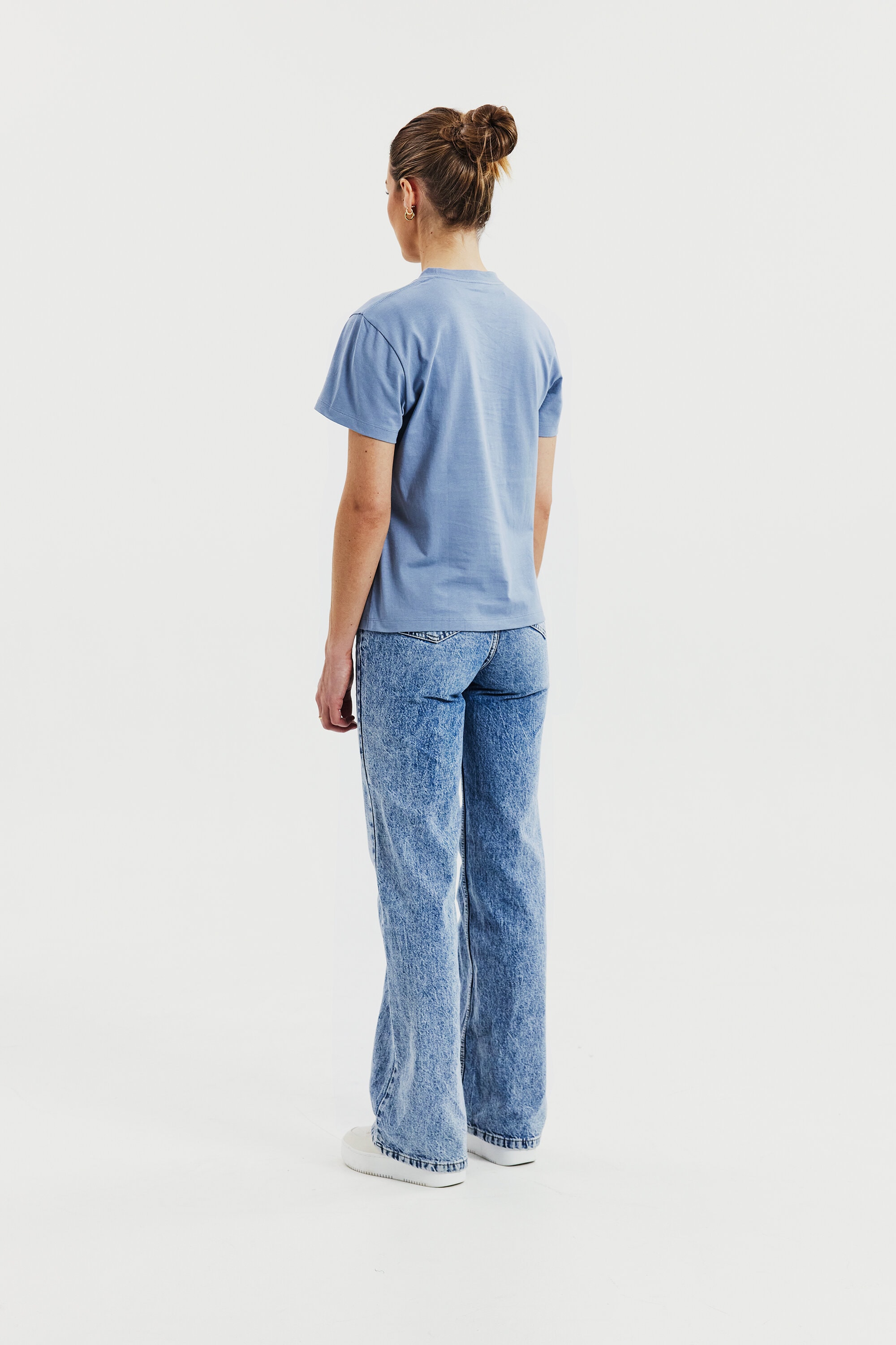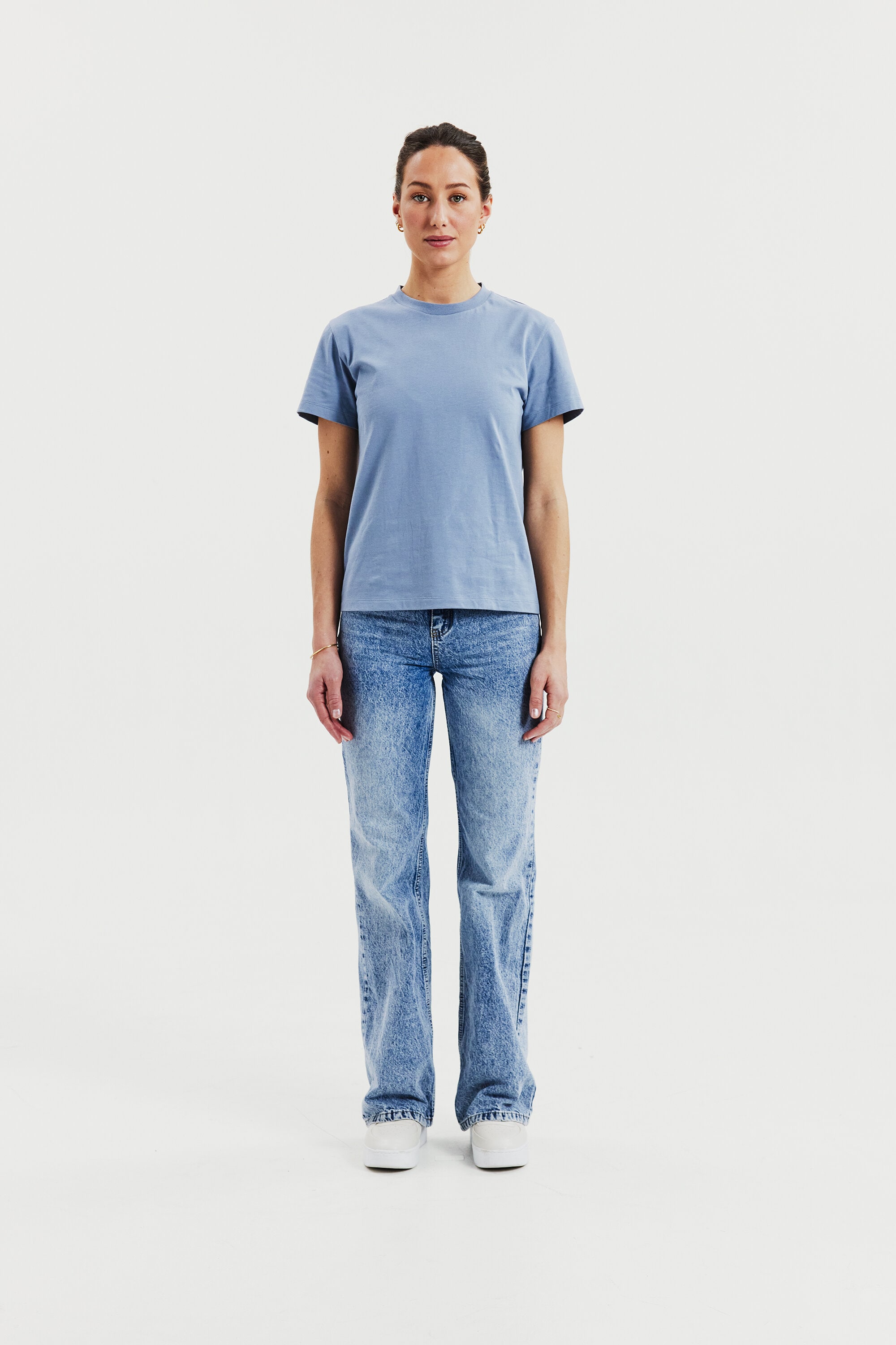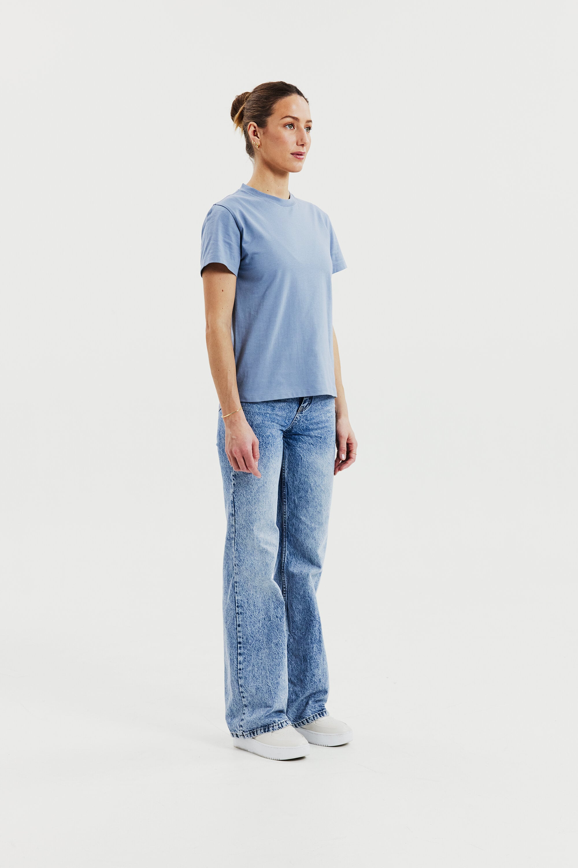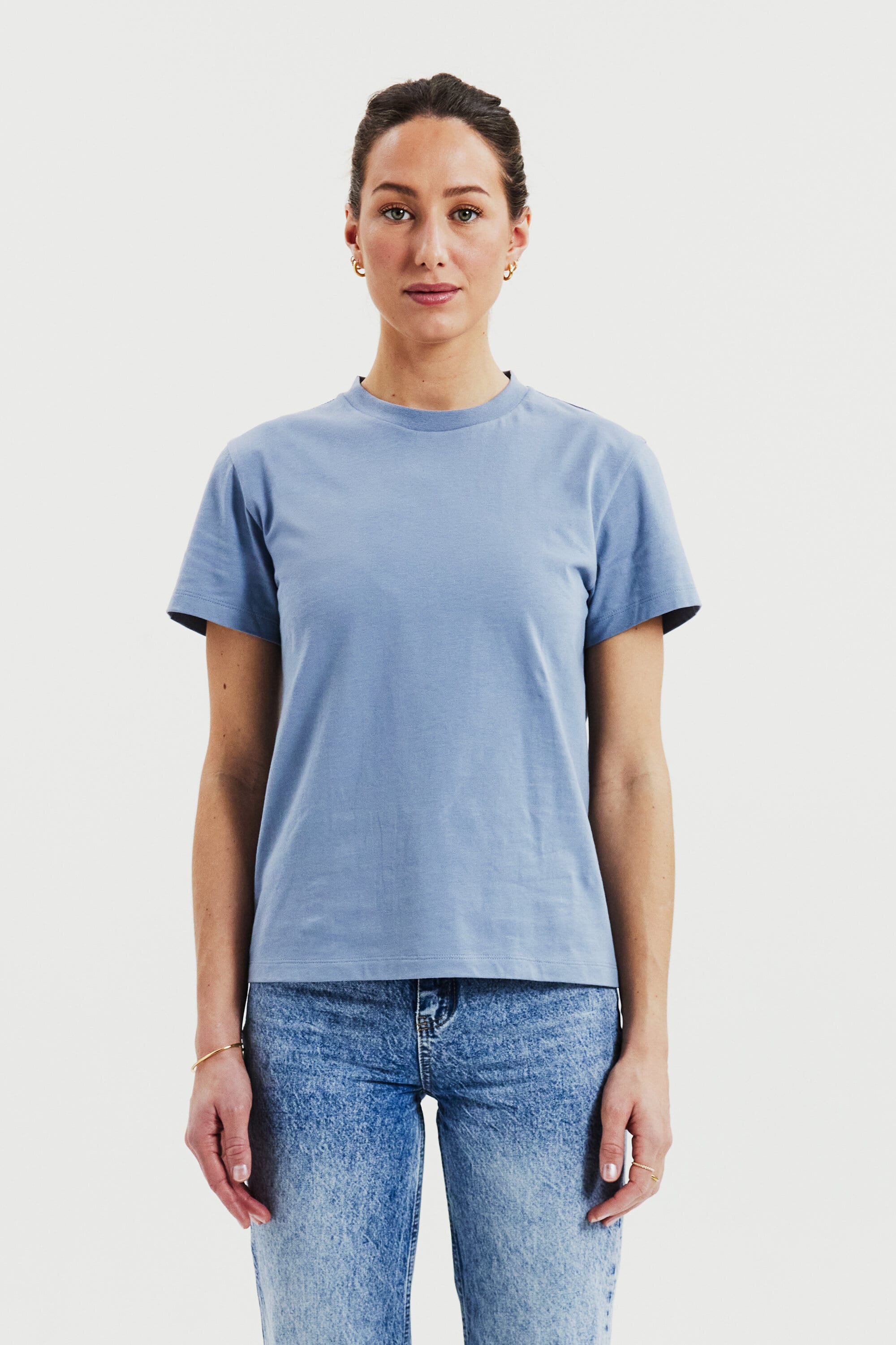 Een moderne klassieker met hoge kraag, in een ietwat boxy model. Gemaakt van zijdezacht biologisch katoen dat niet doorschijnt, waardoor het perfect is voor het meeste: sportief, casual of gekleed. Draag het in je broek of eroverheen. Verborgen naad in de halslijn en mouwen met normale lengte.