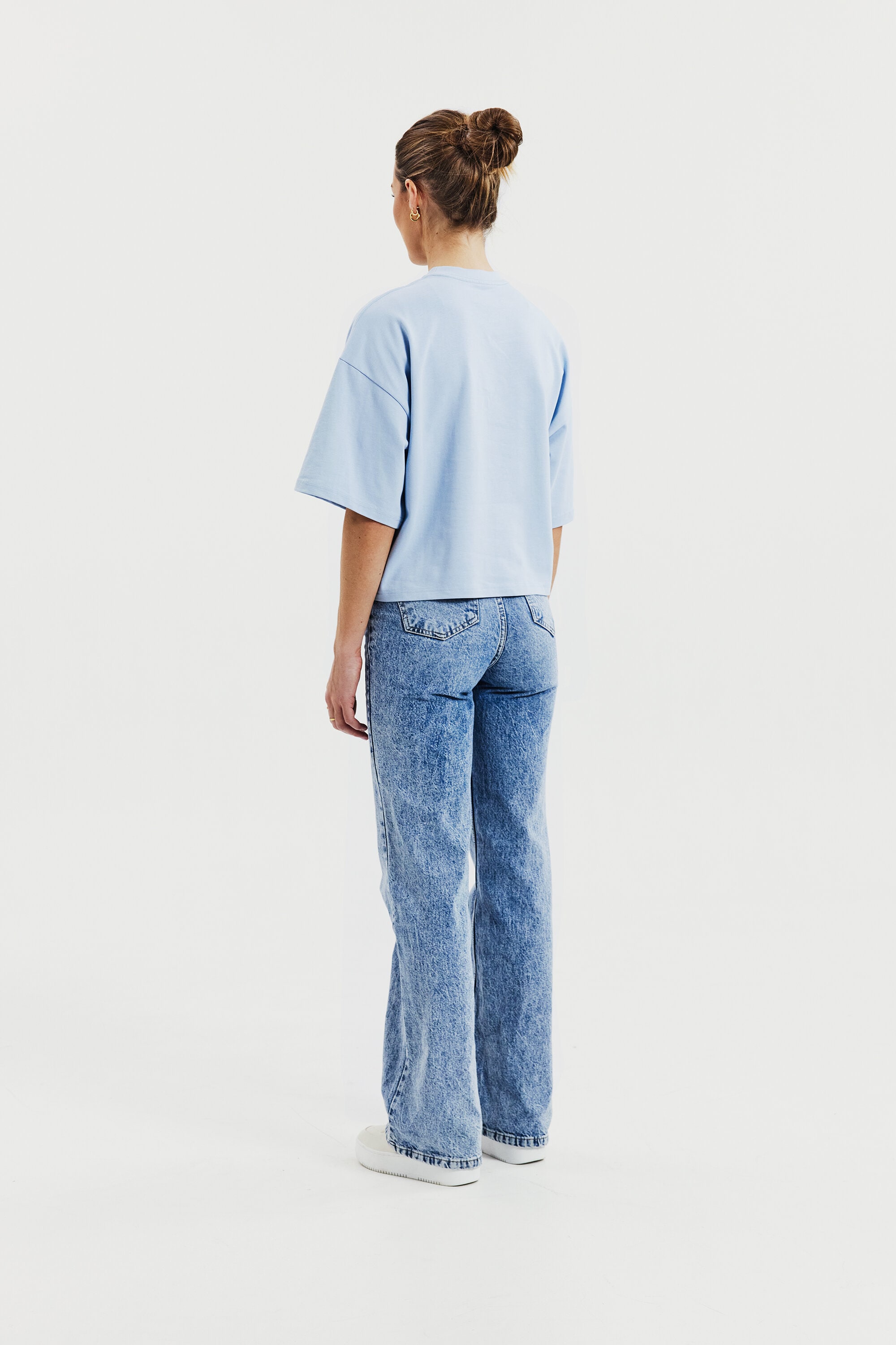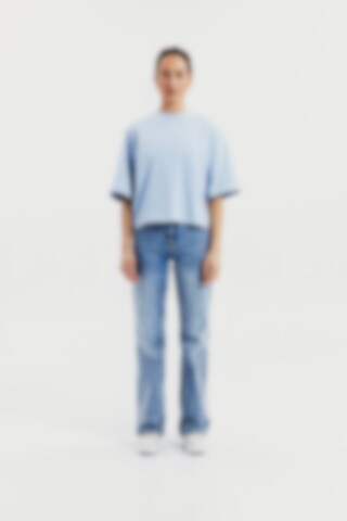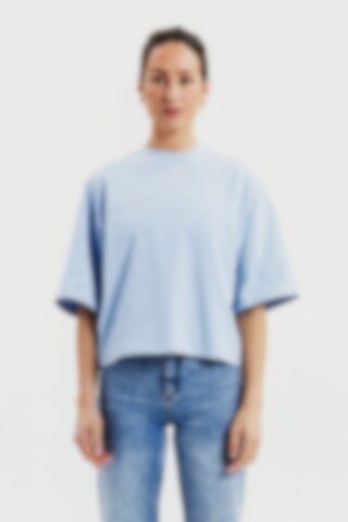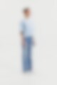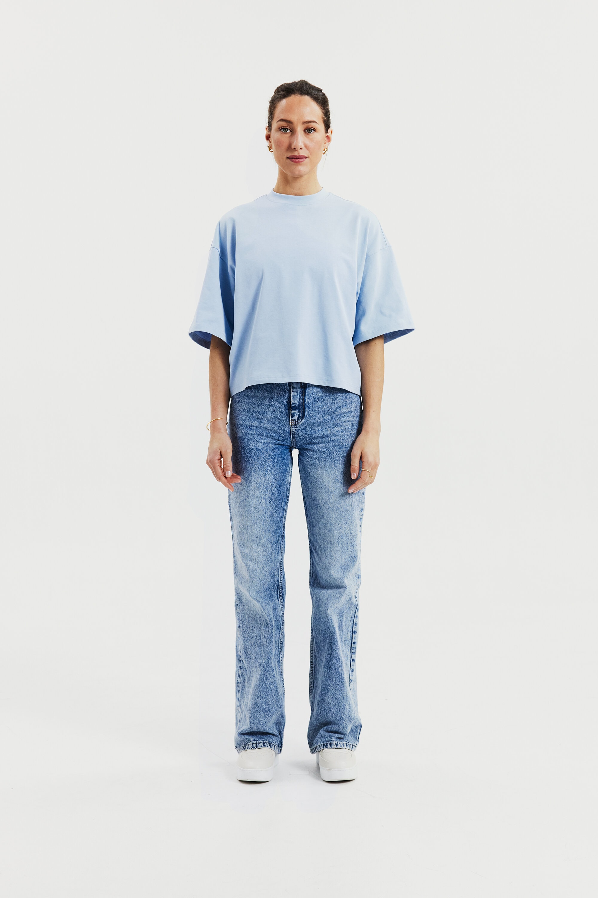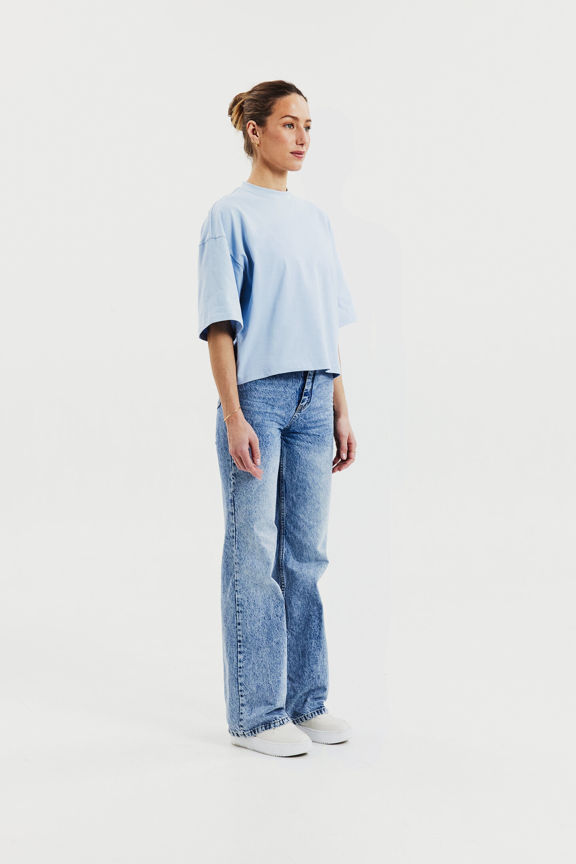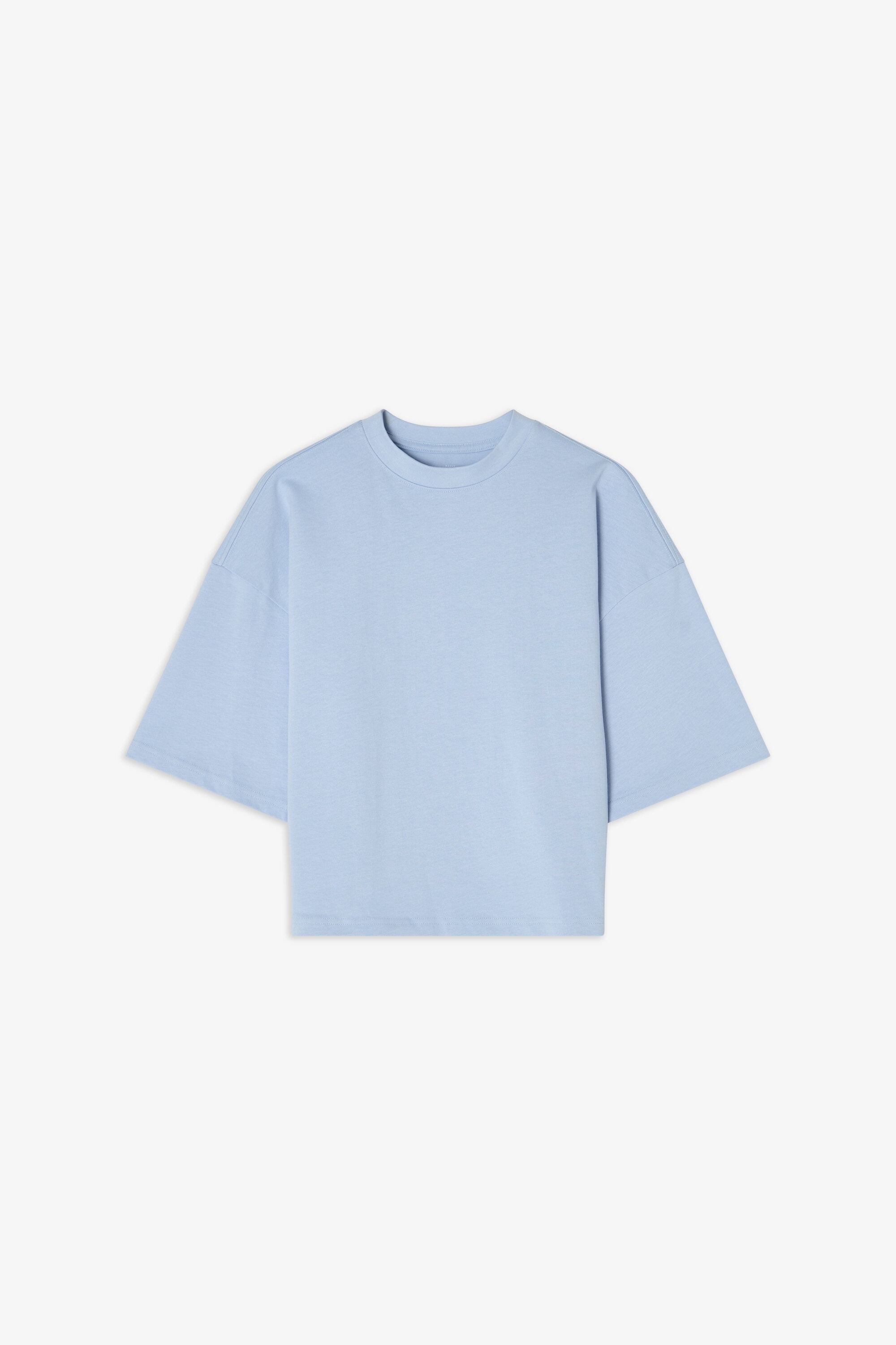 T-shirt gemaakt van stevig 300 gsm biologisch katoenen stof. Het heeft een robuuste halslijn met opvallende stikdetails en stijlvolle zijsplitten. Met iets langere mouwen en bredere schouders krijgt het een subtiele oversized look. Dit kledingstuk komt echt tot zijn recht wanneer het alleen gedragen wordt en geeft een moeiteloos coole esthetiek.