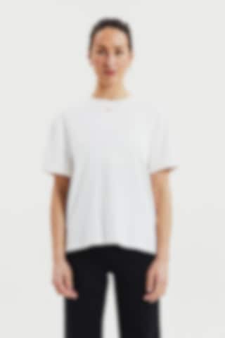 Experience the luxurious feel of our heavy viscose jersey fabric with its exquisite drape. The boxy fit and side slits provide exceptional comfort. The combination of this premium fabric and contemporary cut gives our T-shirt an updated and elegant look that is truly remarkable.