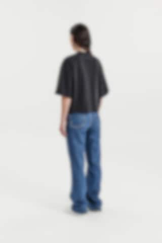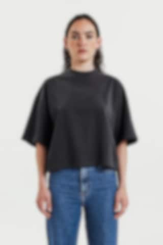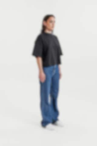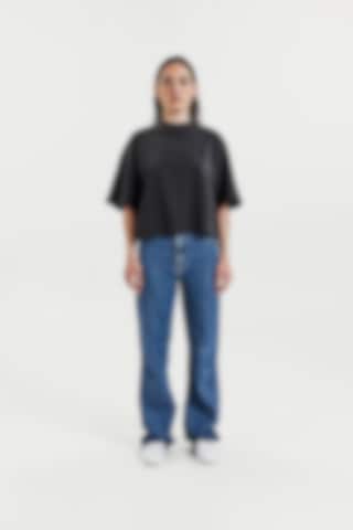 T-shirt gemaakt van stevig 300 gsm biologisch katoenen stof. Het heeft een robuuste halslijn met opvallende stikdetails en stijlvolle zijsplitten. Met iets langere mouwen en bredere schouders krijgt het een subtiele oversized look. Dit kledingstuk komt echt tot zijn recht wanneer het alleen gedragen wordt en geeft een moeiteloos coole esthetiek.