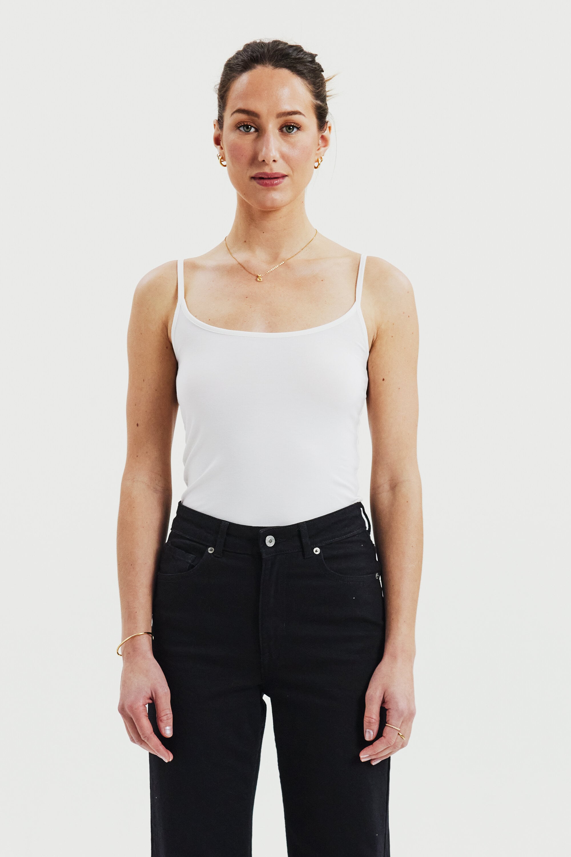 Tanktop / singlet voor dames met smalle schouderbandjes en een ronde hals. Gemaakt van zachte lyocell met stretch voor een flexibele en nauwsluitende pasvorm. Het lichte en ademende materiaal maakt deze top comfortabel om de hele dag te dragen. Een veelzijdige tanktop voor dames – perfect als eerste laag onder andere kleding of op zichzelf tijdens warme zomerdagen.