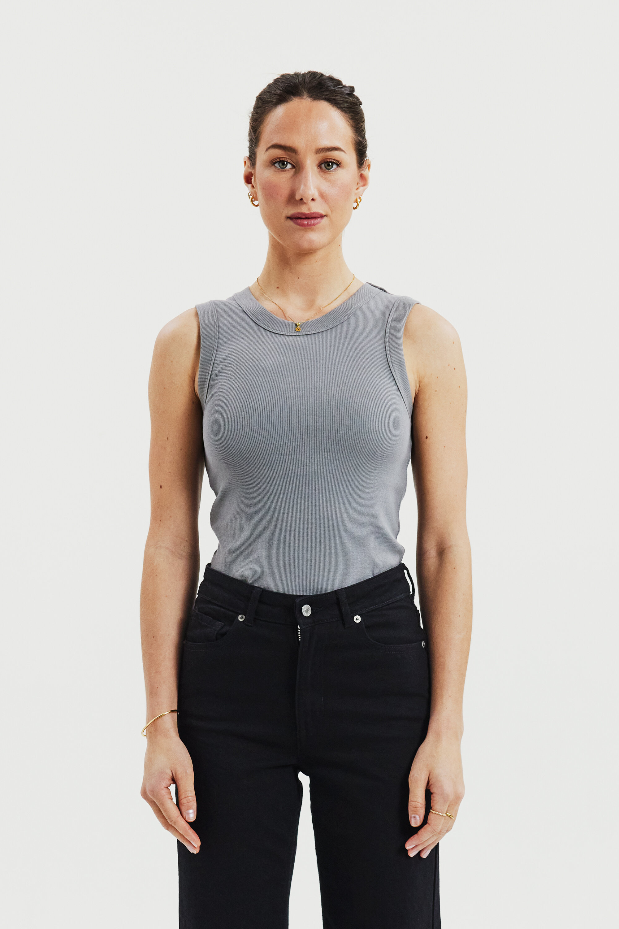 Geribd hemdje met hoge halslijn en iets bredere schouderbandjes. Gemaakt van biologisch katoen met extra stretch voor een aansluitende pasvorm die de hele dag aanhoudt. Perfect voor bij alle zomerrokjes, maar ook om als eerste laag te dragen onder een colbert. Een echte held voor in je garderobe.